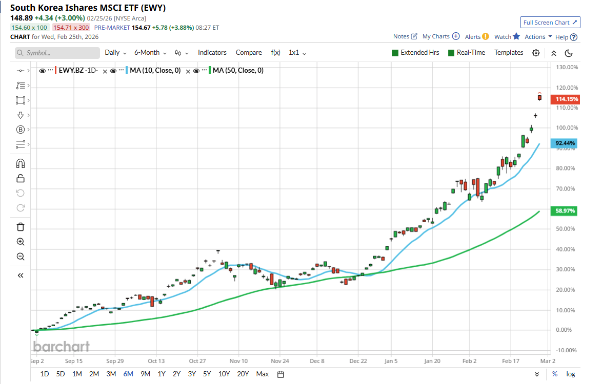 6 days, 5 hours agoI don’t know if you have checked EWY US the South Korea iShares MSCI ETF recently but you might be quite pleased if you do.