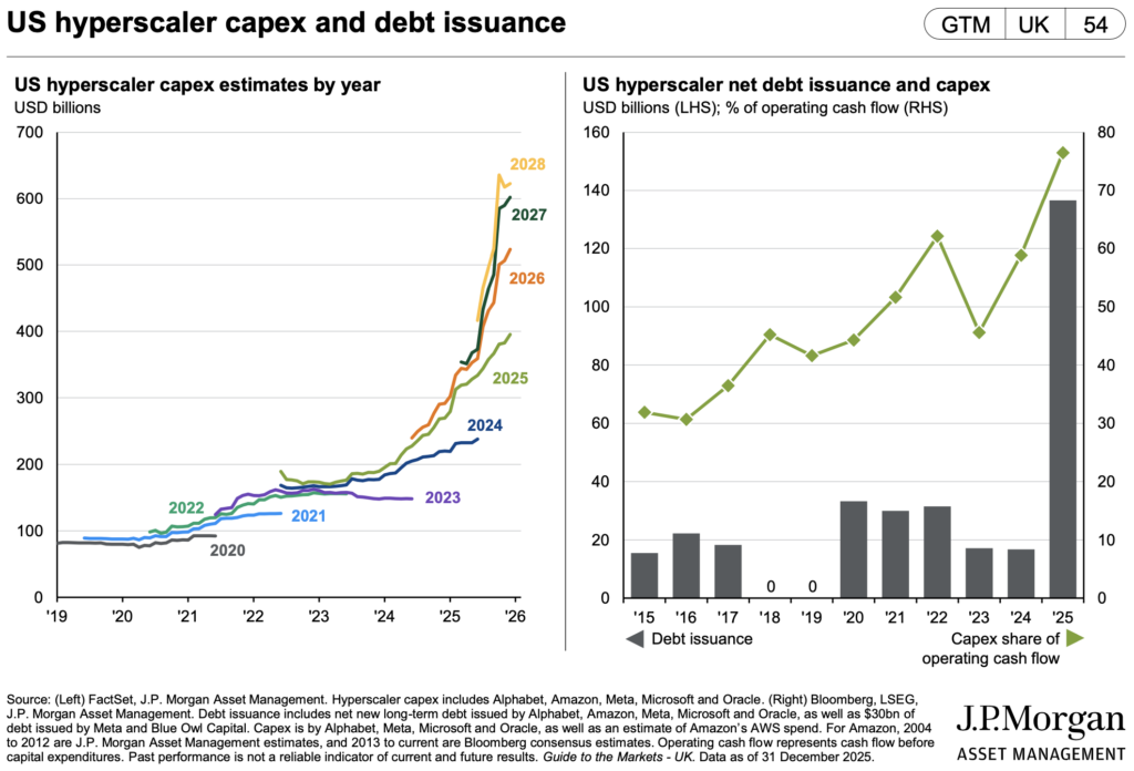 Using medium-term debt to fund long-term infrastructure construction entails huge risk. Debt interest payment and redemption will weigh on a company’s cash flow. If those optimistic revenue projections from AI fail to materialise, these hyperscalers may get into balance sheet troubles.
