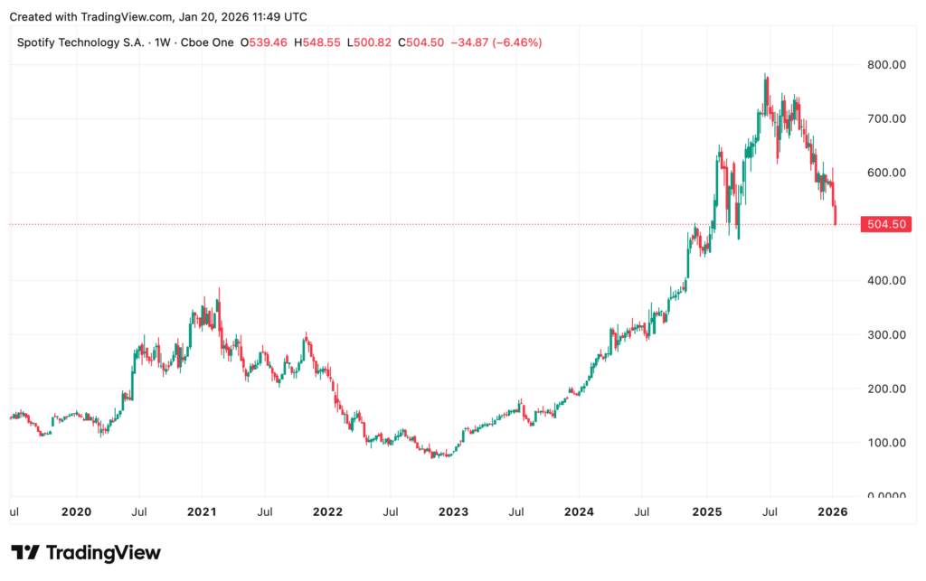 Spotify (SPOT) is another toppy-looking stock (see below).