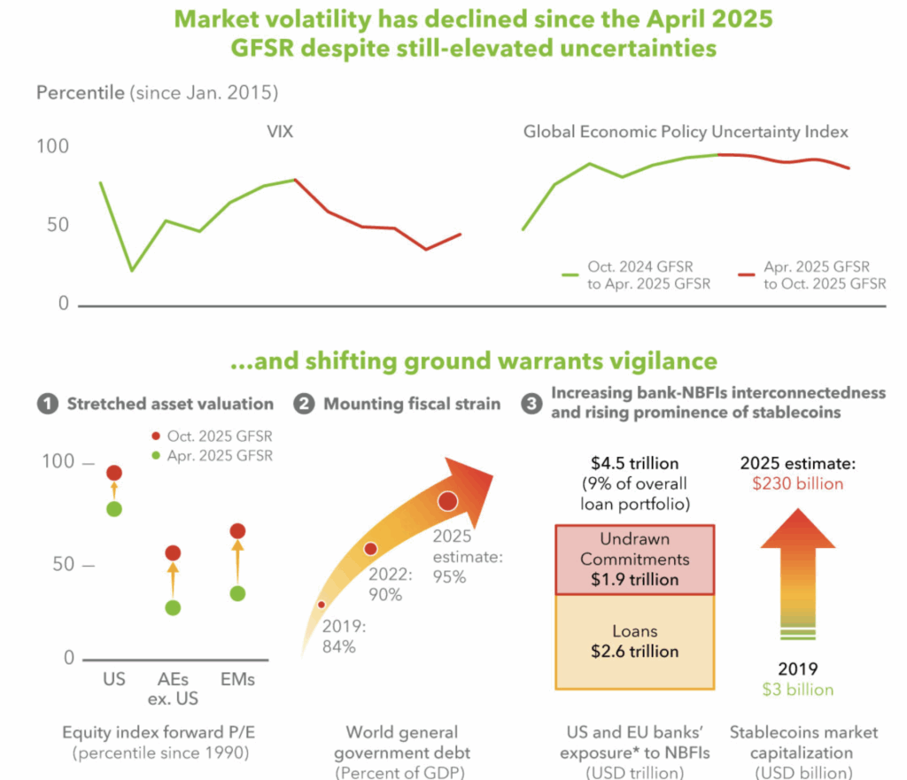 The second point to note is that gold’s fundamental case has not changed. A recent IMF Stability Report (October) has produced an interesting graph that charts various risks in markets, including stretched asset valuation, mounting fiscal strains and increasing contagion impact (see below). All these factors continue to benefit gold.