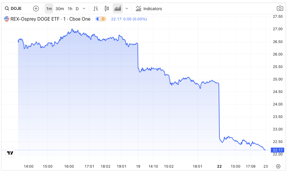 Dogecoin ETF (ticker: DOJE), sponsored by Rex Osprey, listed last week on the CBOE Exchange.