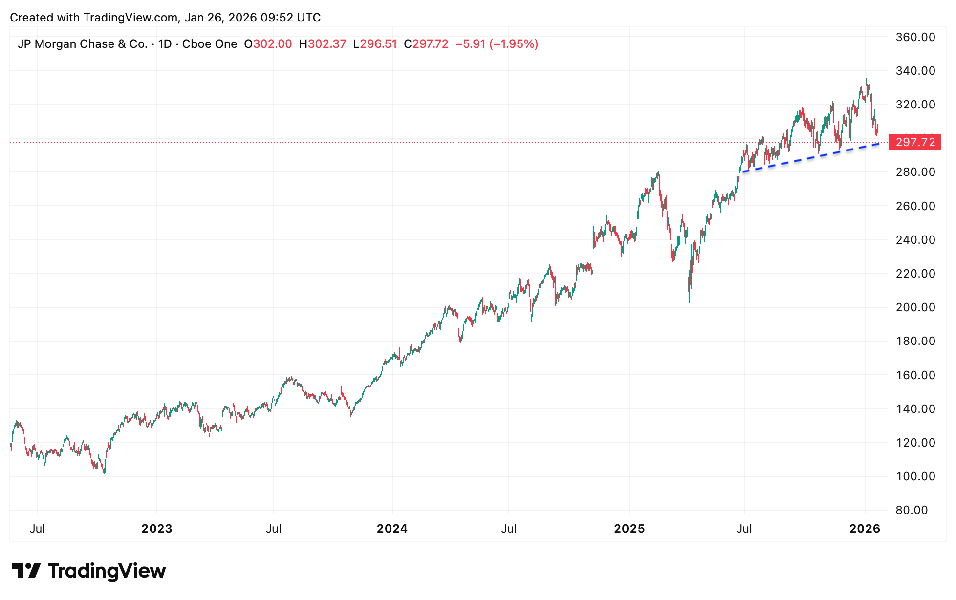 1 week, 3 days ago– JPMorgan retreats to uptrend support –