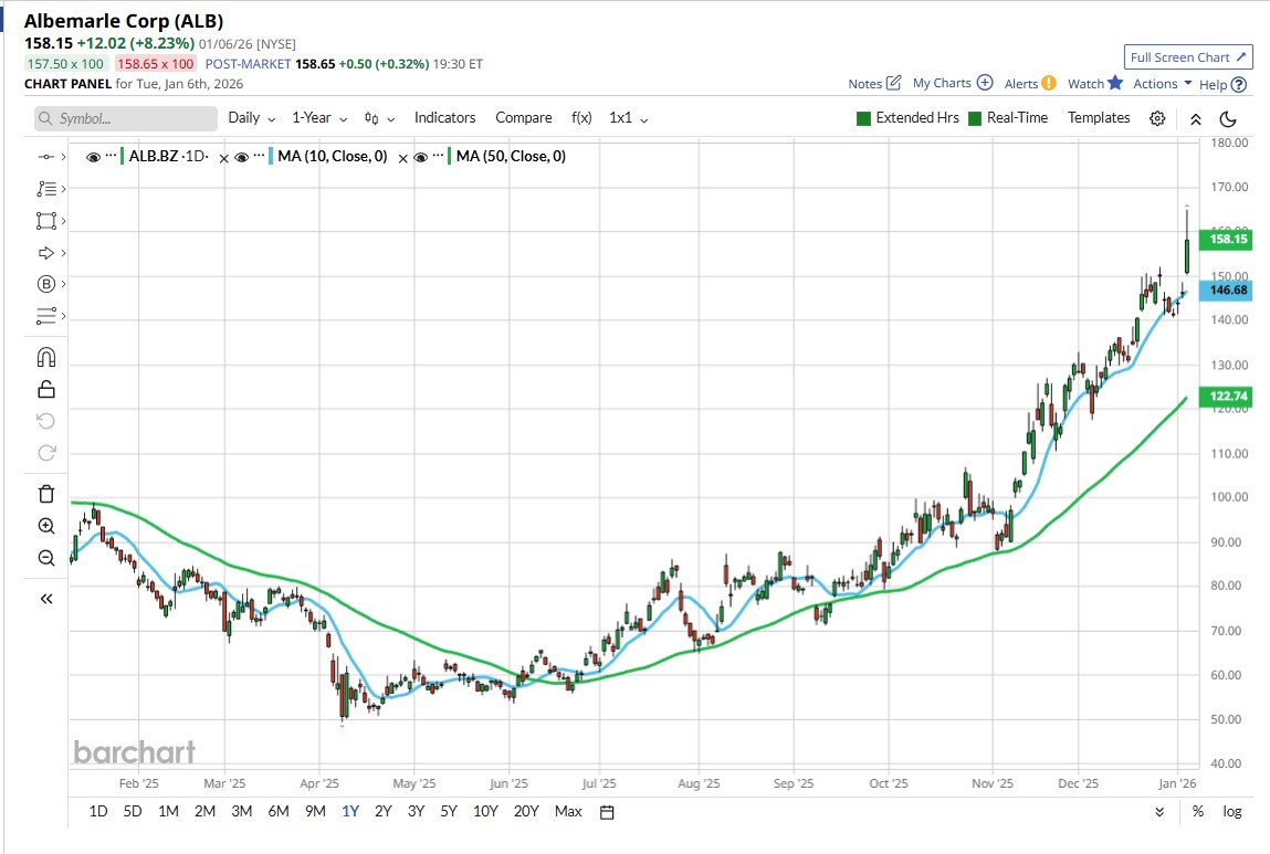 Albemarle (ALB) Brokerage Firm: Robert W. Baird | Action: Upgrade | Ratings Change: Neutral » Outperform | Price Target: $210| Current Price $161.93