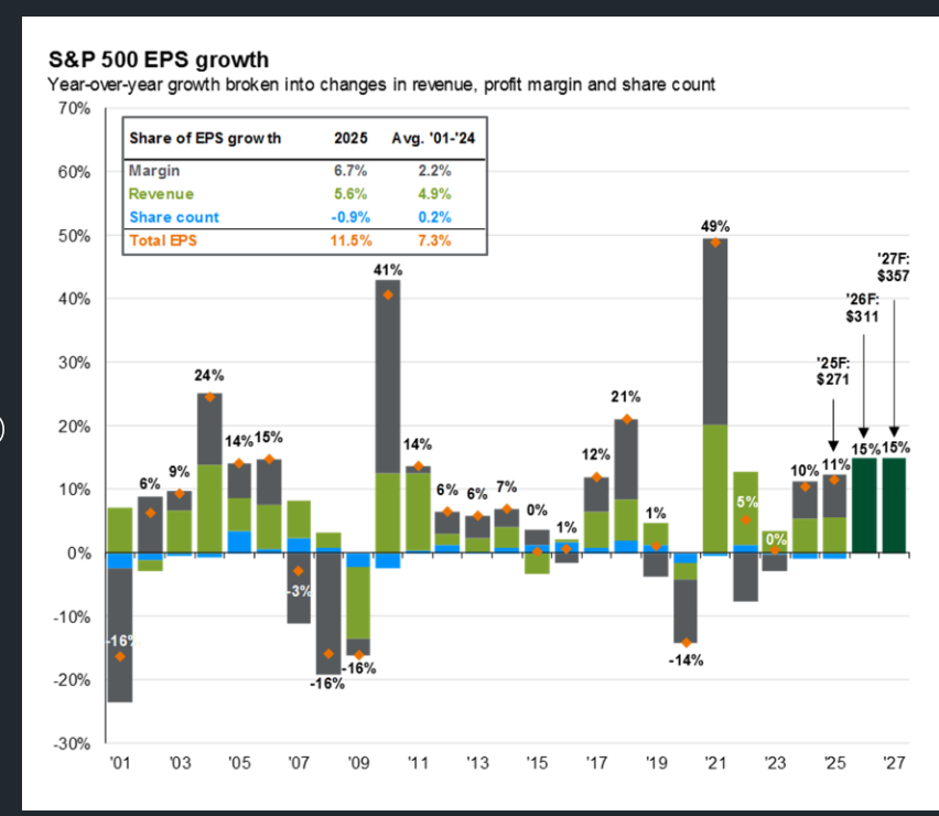 4 days, 18 hours agoWall Street analysts are forecasting EPS growth for S&P 500 stocks in 2026 with EPS expected to hit $311 over the full year according to data from JPM AM ( see image one below) up from the $271 forecast for 2025.