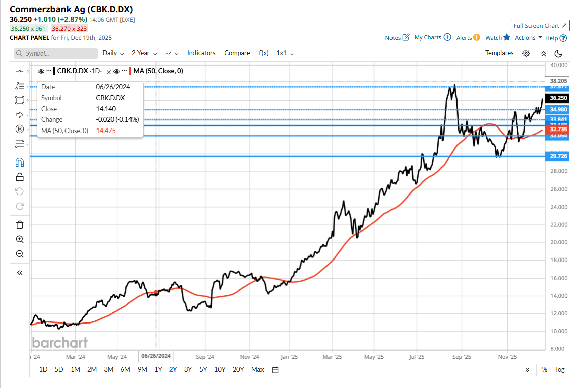 3 weeks agoComing back to European banks I notice that, one of the names I follow, has been moving higher again today, and that’s CBK GR Commerzbank AG .