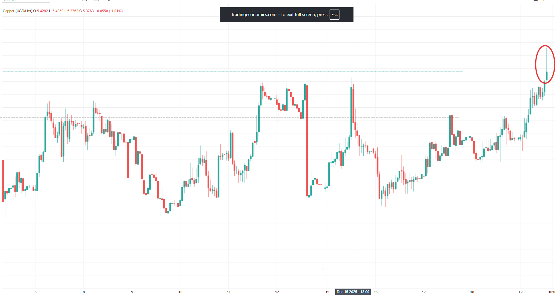 3 weeks agoCopper has tested to new highs today however looking at the candle chart it seems to have rejected that move as of now.