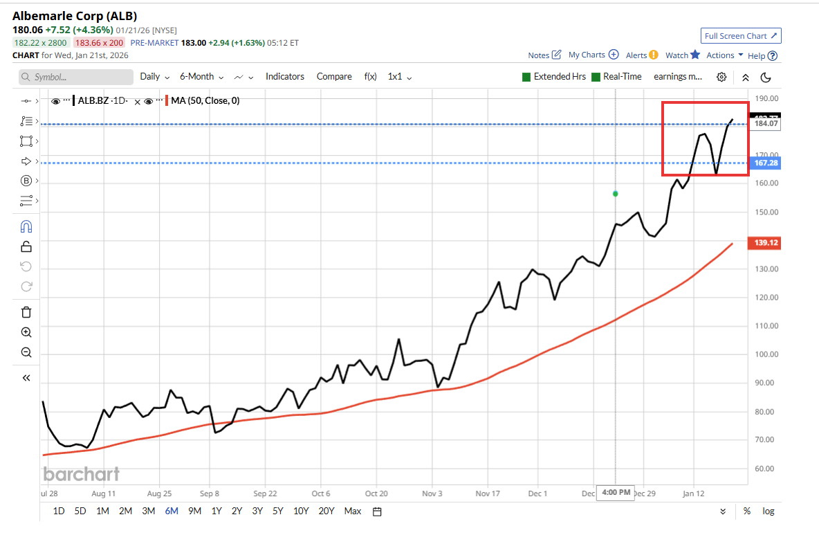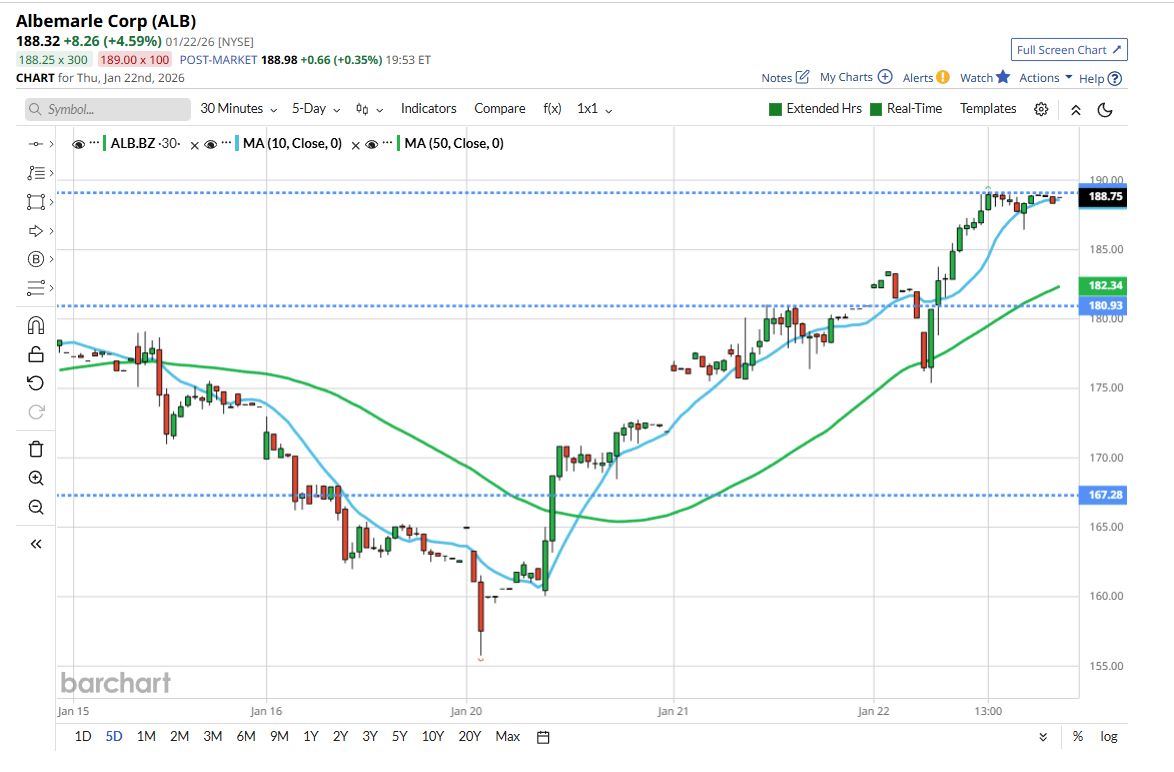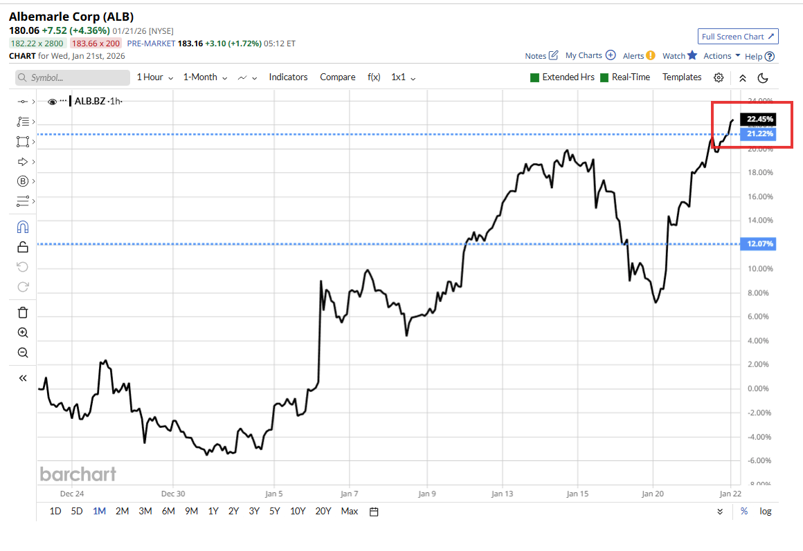1 month agoAlbemarle ALB US added +4.59% in yesterday’s session.