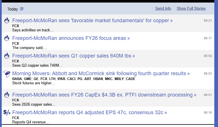 1 month agoFreeport Mcmoran FCX US has reported earnings today, and looks likely to open higher, as its beats on EPS, and is upbeat about copper fundamentals right now.