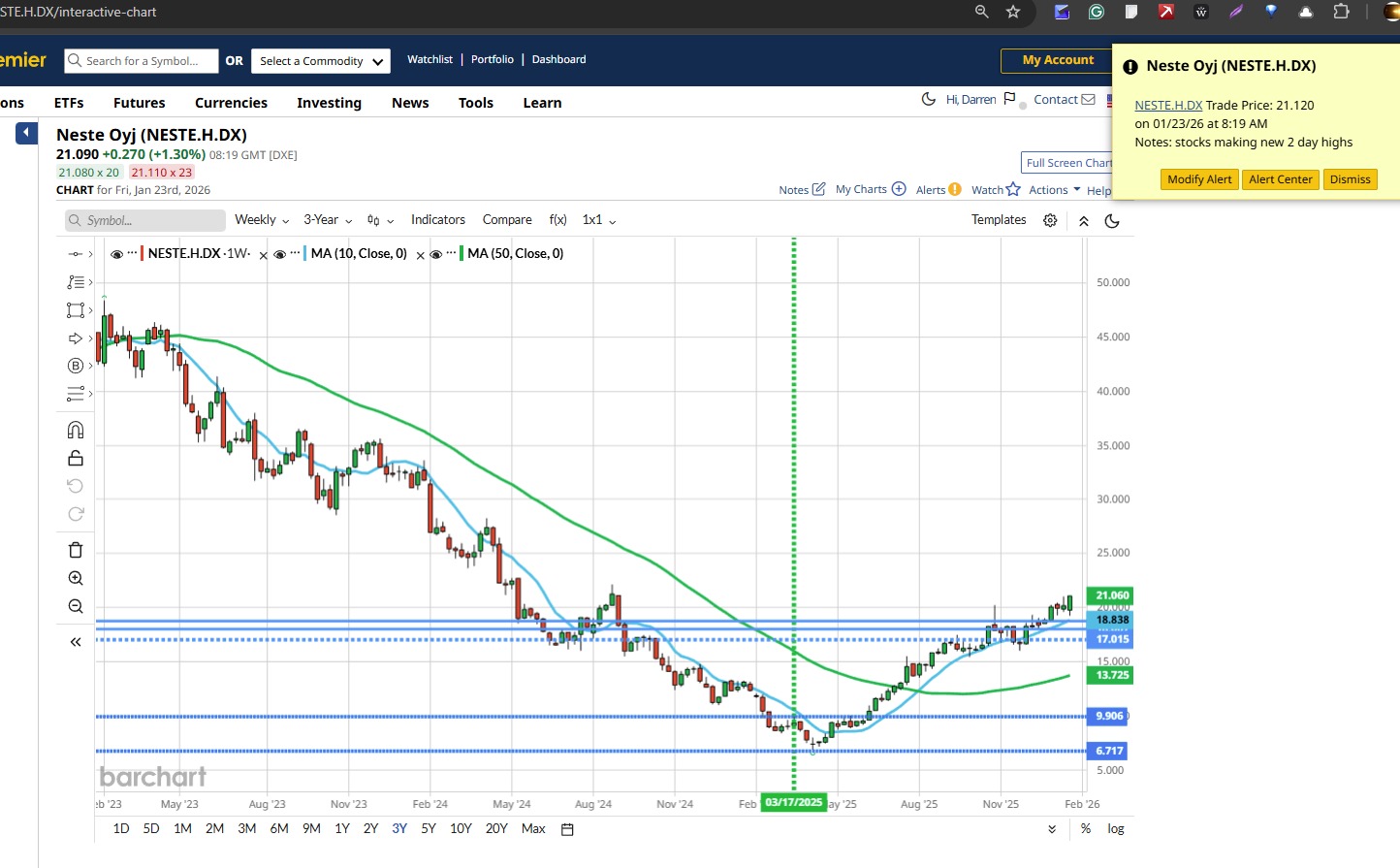Neste Oyi trades higher by +3.60% this morning to print at €21.64. Oh and that move comes on the back of a gap higher and is accompanied new 52 week highs.