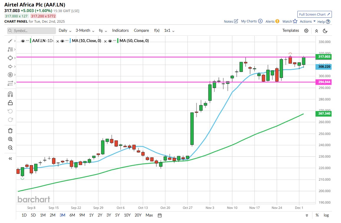 However, there are growth stocks in the UK top flight and one of those is Airtel Africa AAF LN .