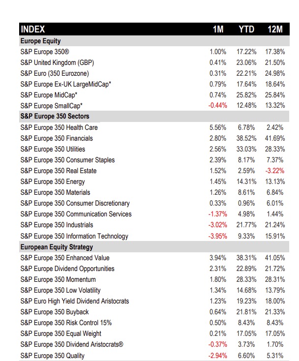 In the images below we see data compiled by S&P DJI for both European and the US markets,