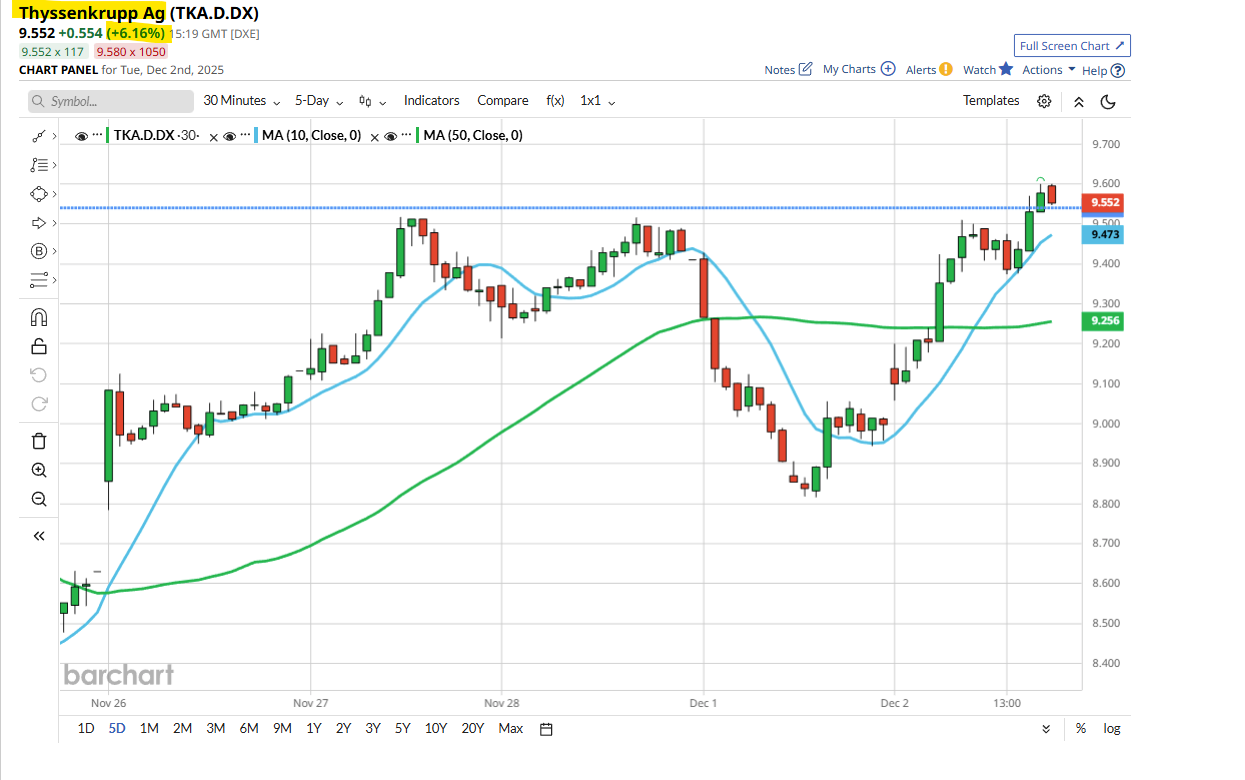 Engineer Thyssen Krupp AG TKA GR has added +6.00% in the session.