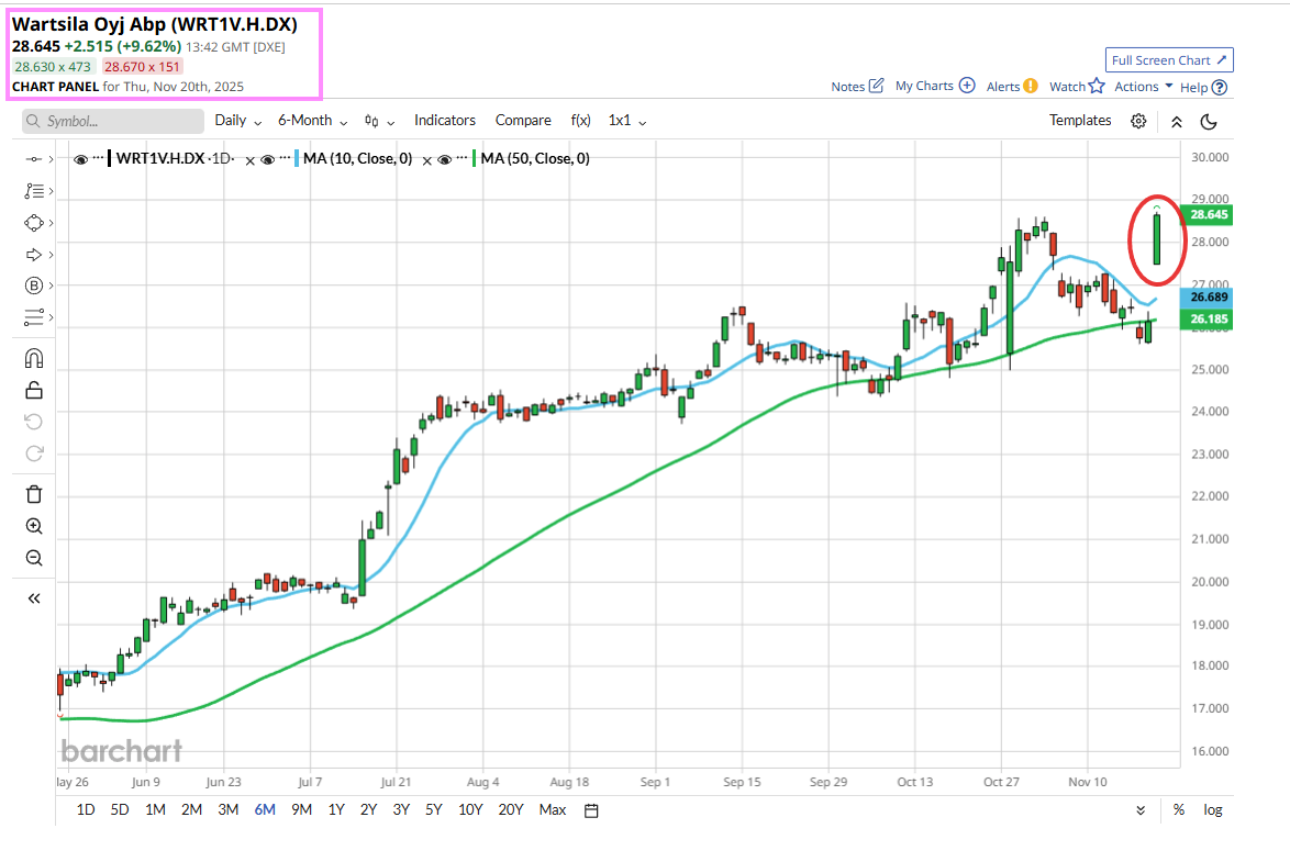 For example Finnish engine and turbine maker Wartsila WRT1V the stock is up 9.26% today on deal to supply 27 engines to a US datacentre.( see…[Read more]