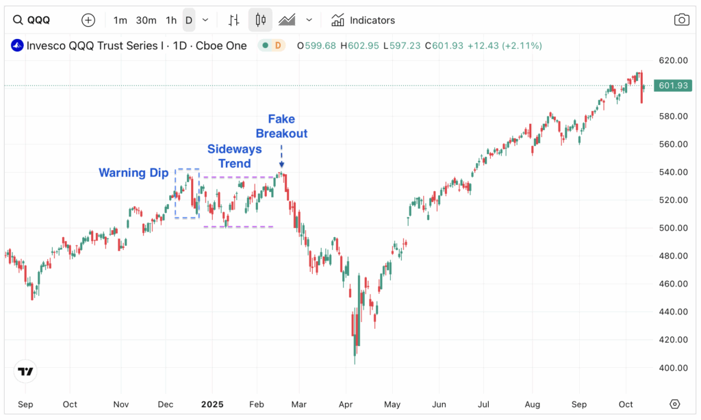 Poring over some key charts over the weekend, I did notice a chart pattern that may provide a potential roadmap for US indices in the next few weeks. Take, for example, the Nasdaq 100 Index ETF’s (QQQ) behaviour a year ago.